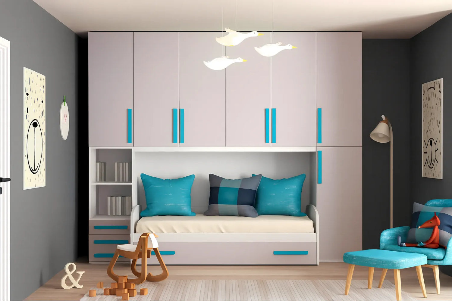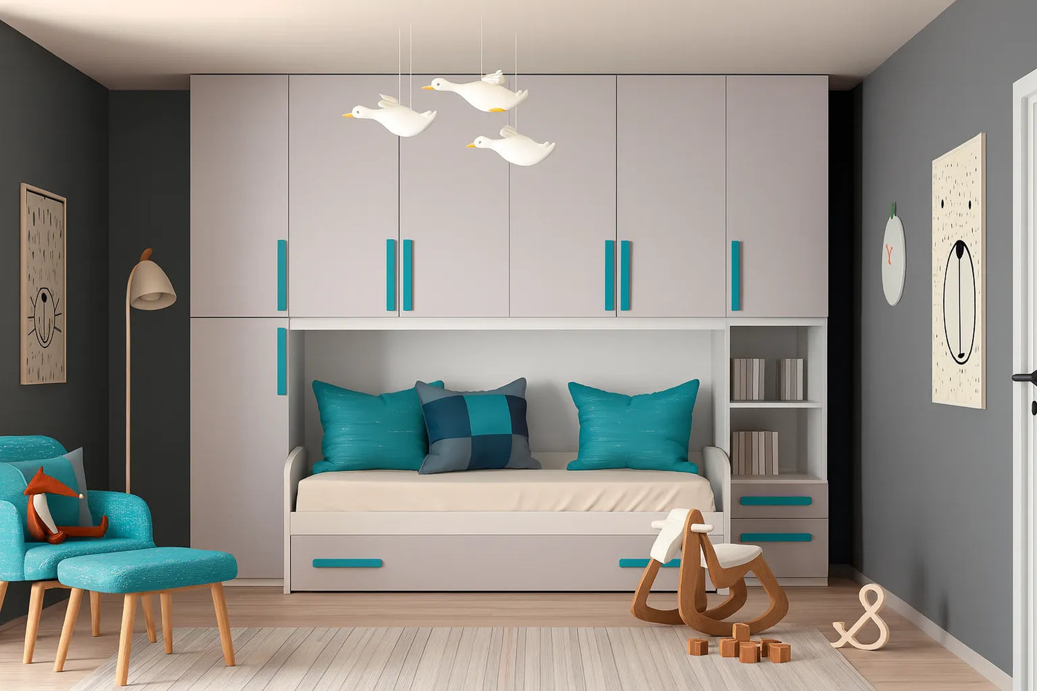 La Cameretta Iris si distingue per i suoi dettagli colorati e armoniosi, che la rendono adatta sia per bambini che per ragazzi, accompagnando la loro crescita con uno stile fresco e intelligente.