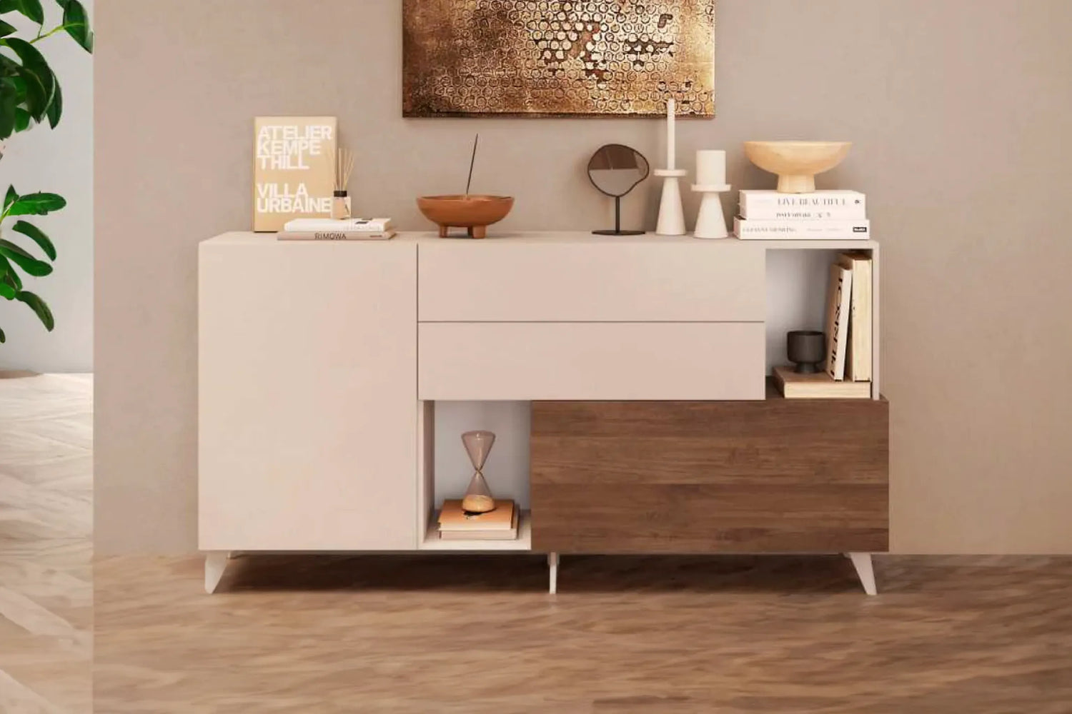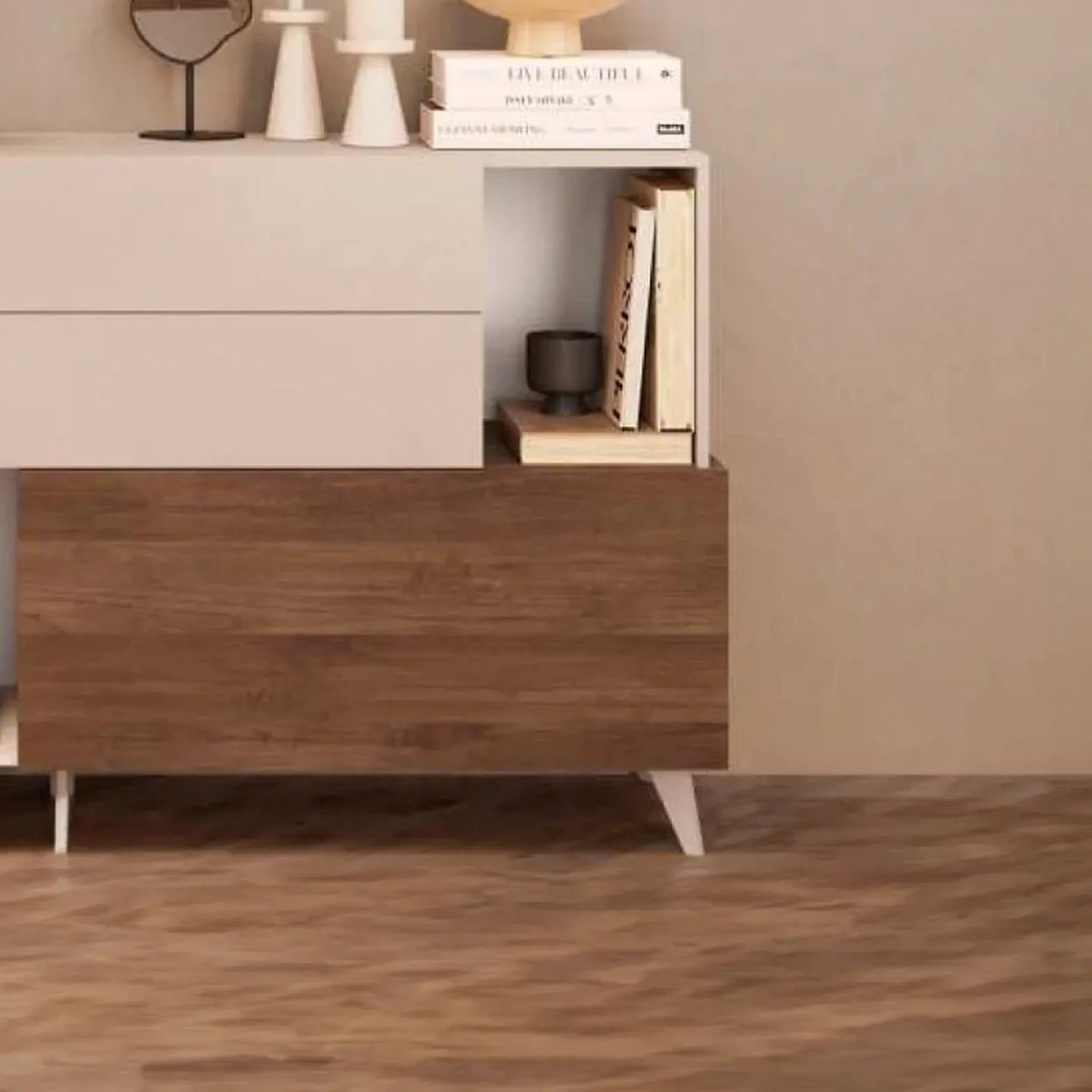 Le linee pulite e il design geometrico rendono questa madia versatile e adatta a diversi stili d’arredo, dal contemporaneo al più minimalista.