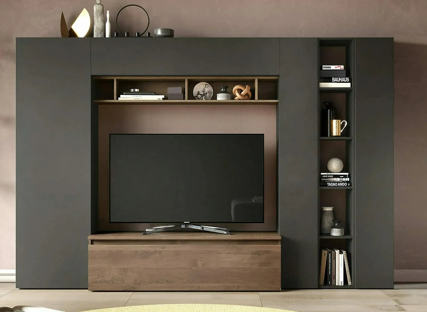 Parete Attrezzata Federica in finitura Lava e Mercure
