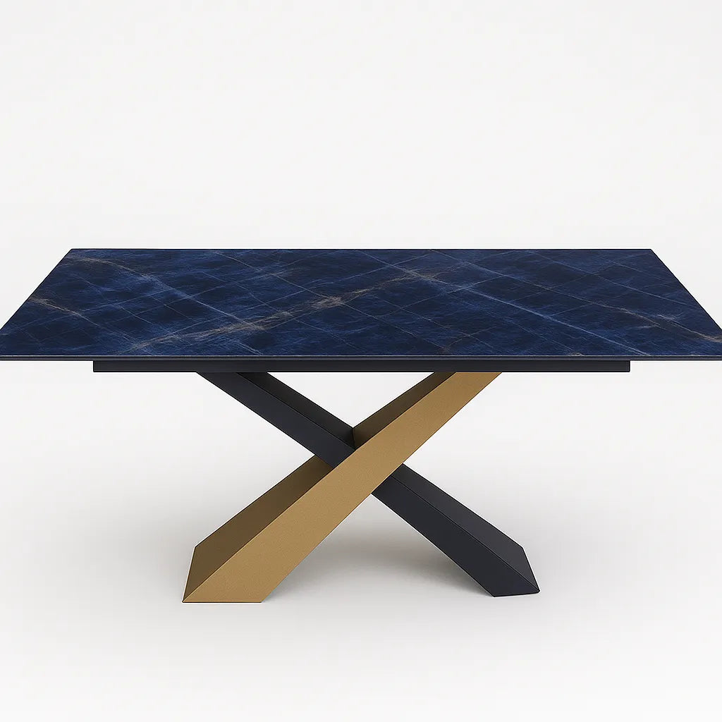 Il tavolo Ixcence di Abitare è un raffinato esempio di design contemporaneo che unisce materiali pregiati e soluzioni innovative. Perfetto per ambienti moderni ed eleganti, questo tavolo si distingue per la sua struttura in metallo a incrocio, che conferisce solidità e carattere all'arredo.
