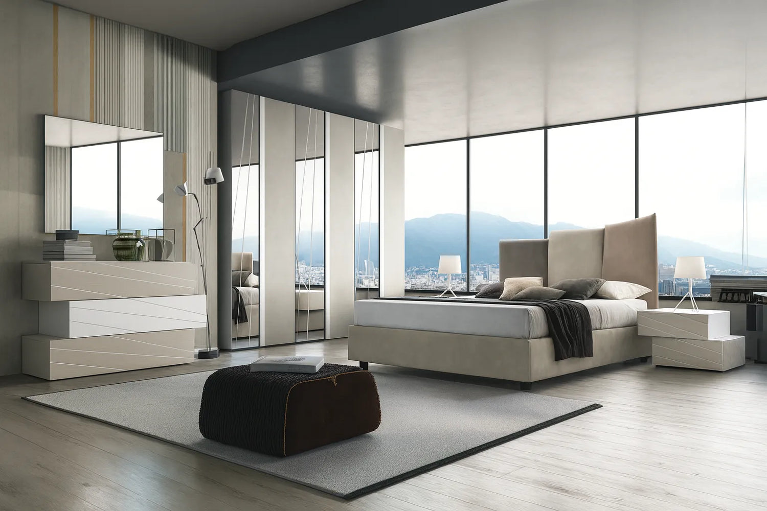 La camera da letto Londra esprime uno stile contemporaneo e sofisticato, ideale per chi ama l’equilibrio tra design, comfort e luminosità.
